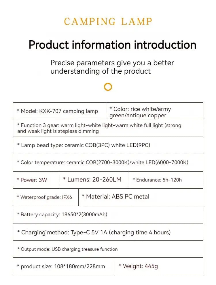 * Model: KXK-707 camping lamp